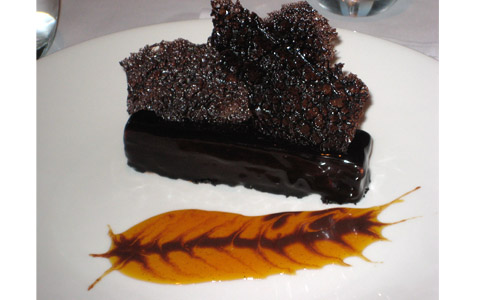 Essentially, it was a chocolate mousse, on top of a long, thin cookie, with a strip of dark chocolate in the middle, and covered with dark chocolate.