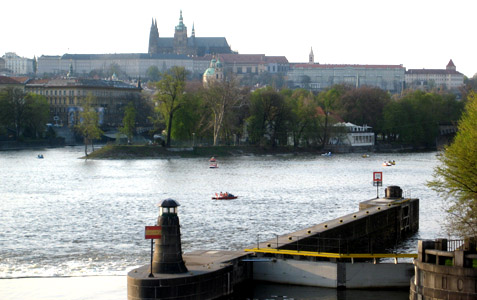 We crossed the busy intersection in front of the building, pausing look back and take in the early evening view of Prague Castle across the river.