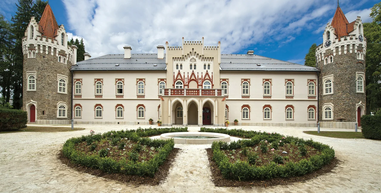 Its several owners left their mark on the architectural style, with Jan Nepomuk z Trautmannsdorf redoing it in the new-gothic style, with a tower, battlements, and façade.