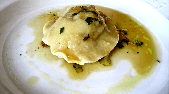 The menu needs a small correction. Ravioli is plural. This was one medium-sized raviolo.