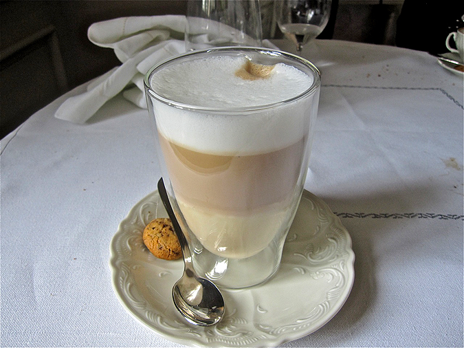 We had a cappuccino and a cafe latte (85 CZK/each).