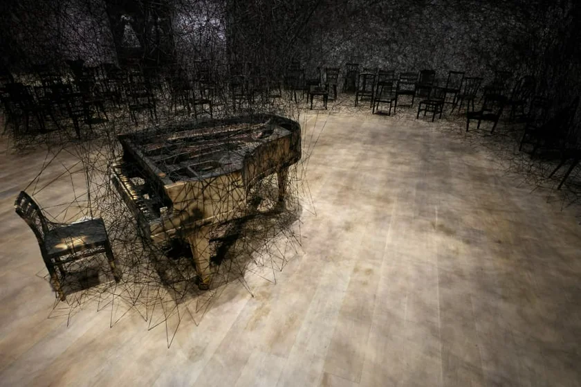 Shiota, whose work explores the invisible threads connecting people, places, and histories, is best known for her monumental yarn installations—visually arresting networks of red threads that sweep across space like the delicate yet unyielding strands of memory itself.