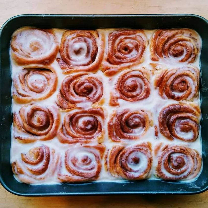His thoughts led him to French toast, which he usually makes with cinnamon and powdered sugar, which gave him the inspiration to try cinnamon rolls. He baked a tray, put them on the window to cool, and then offered them, free of charge, to his regular customers as they ordered their pulled pork sandwiches.