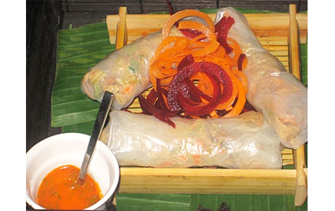 There was some crunch from the greens inside. The texture was right, but not the taste. There was no basil or cilantro (coriander), as far I could tell, which would have seriously helped.