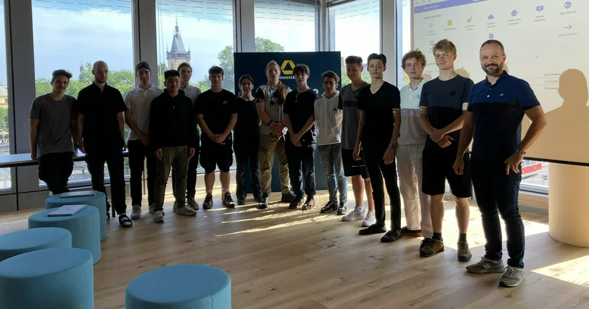 Work experience at Commerzbank’s DTC in Prague focuses on tech development. During their initial two-week experience in May, students were given free rein to work on their own application using infrastructure in Azure Cloud, concluding with a presentation of their project and live demonstration of their application in English.