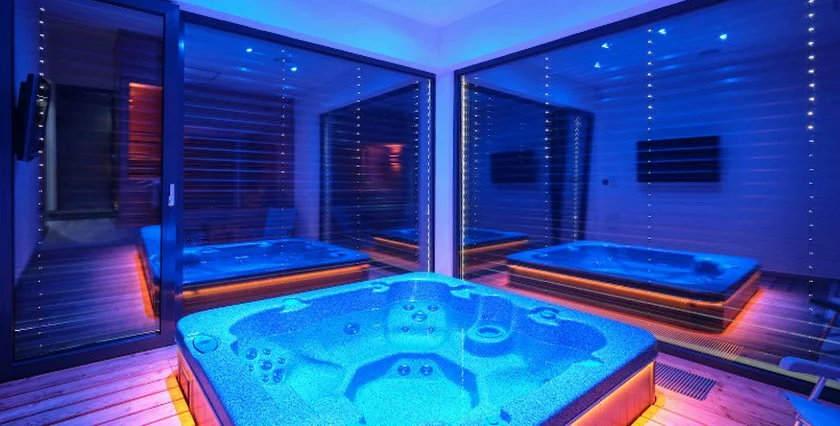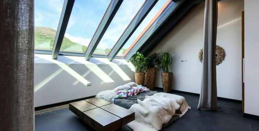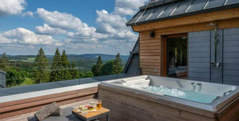 Based in “the heart of the Jizera Mountains,” Hotel Královka offers a wellness service on a rooftop, overlooking the scenic views of surrounding forests. Amazing Places writes that the hotel’s jacuzzi, outdoor pool, and playground for children also add to its attractiveness. Its exterior architecture is also largely wood-based, contributing to its aesthetic.