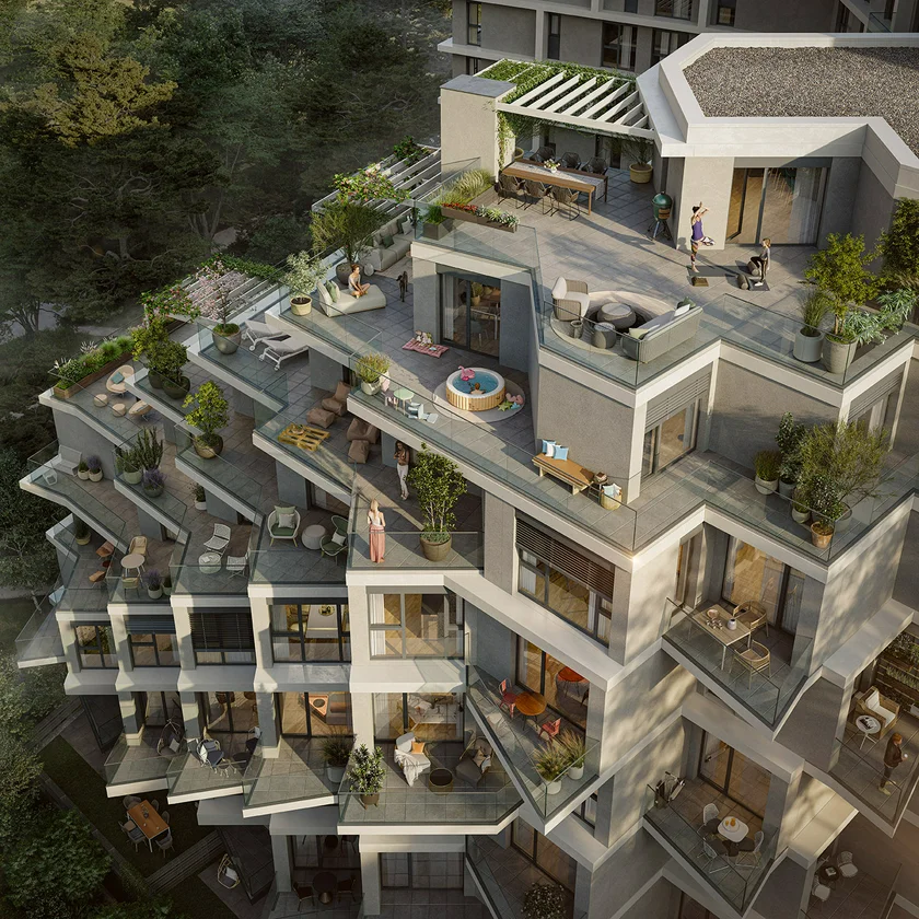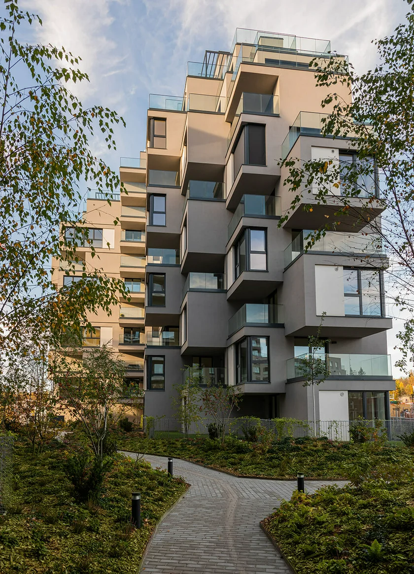 Five separate residential buildings of varying apartment sizes, each with its own private balcony or terrace are available. State-of-the-art living quarters characterized by high-quality materials, functional design, and bright open spaces are currently available in four buildings, named Alfa, Beta, Gamma, and Kappa, in various sizes ranging from 1+kk to 5+kk.