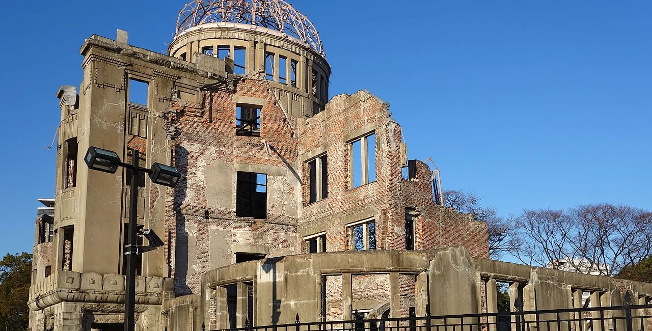 Because the atomic bomb exploded in the sky almost directly above the Promotion Hall, it was largely spared the destruction that followed though the rest of the blast zone. Though its windows were shattered and portions of the facade crumbled, most of the structure remained intact, include its distinctive top dome.