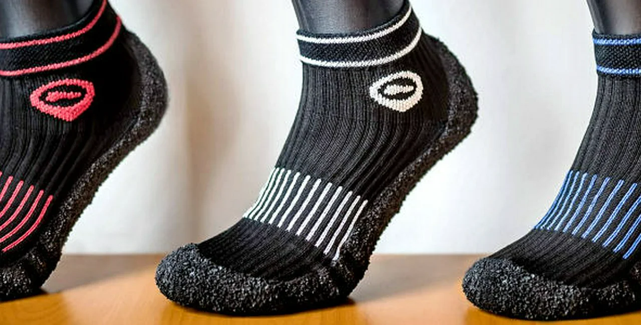 The top half resembles a state-of-the-art sock, complete with “mesh ventilation zones”, “high-tech cooling viscose threading, and “anti-bacterial yarns with pure silver.”