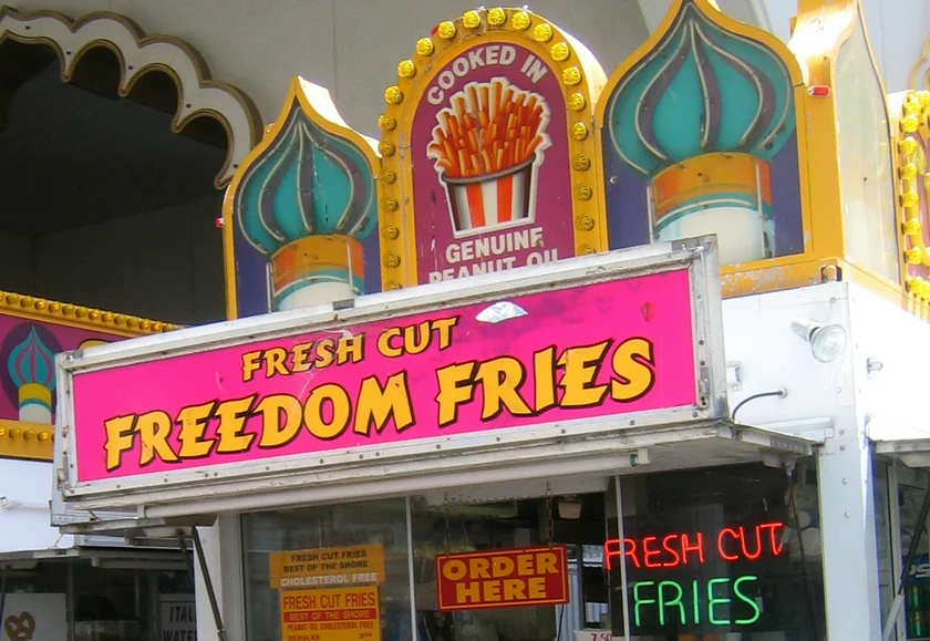When World War I started, fried sliced potatoes were called German fries in some areas, and french fries in others in the U.S. The name french fries won out at least until 2003 when France opposed the Iraq war. There was an effort to rename french fries to freedom fries, and french toast to freedom toast. Freedom fries were on the menu in the U.S. Congress’s dining hall until 2006.