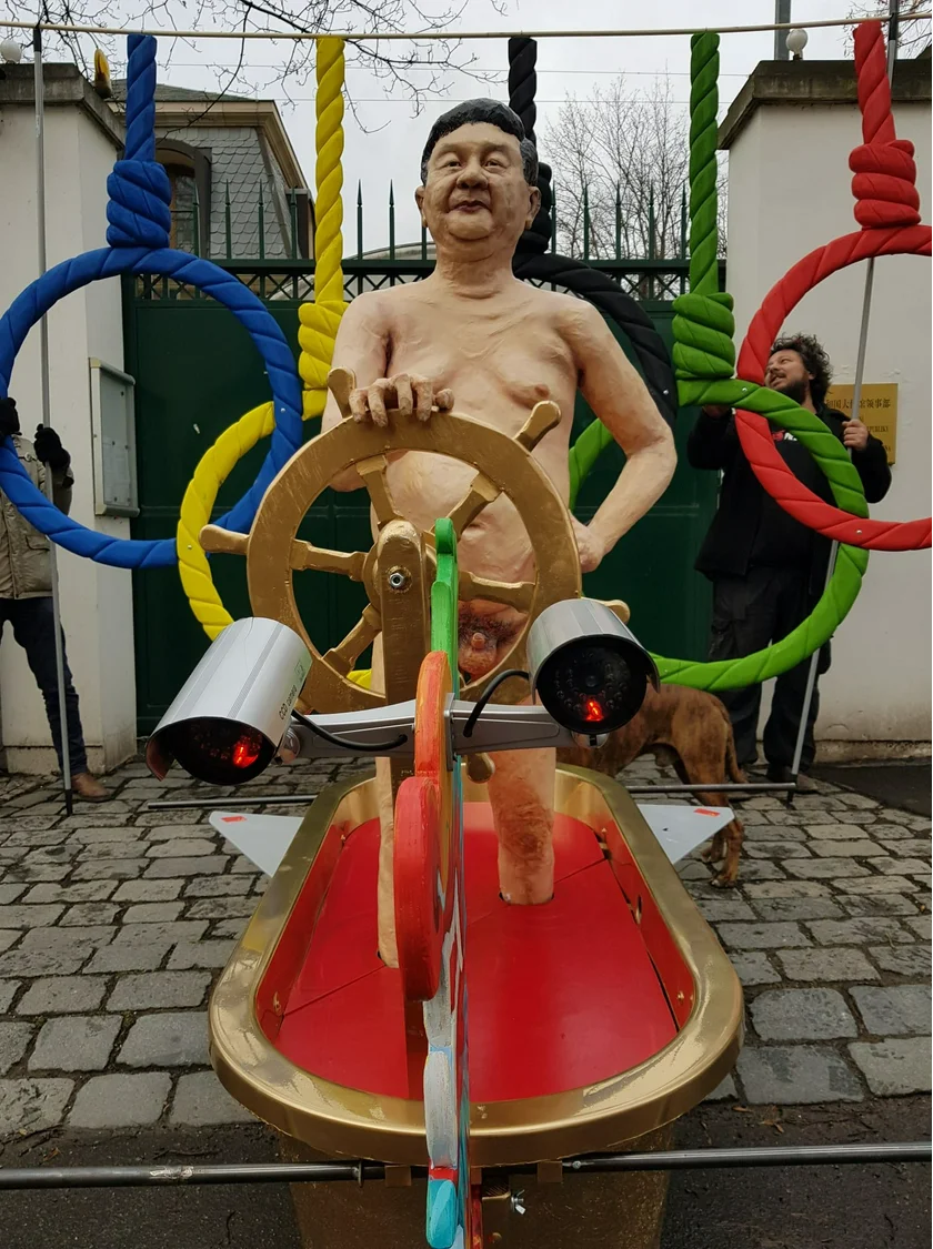 China Naked Xi Jinping statue paraded in Chinese embassy protest