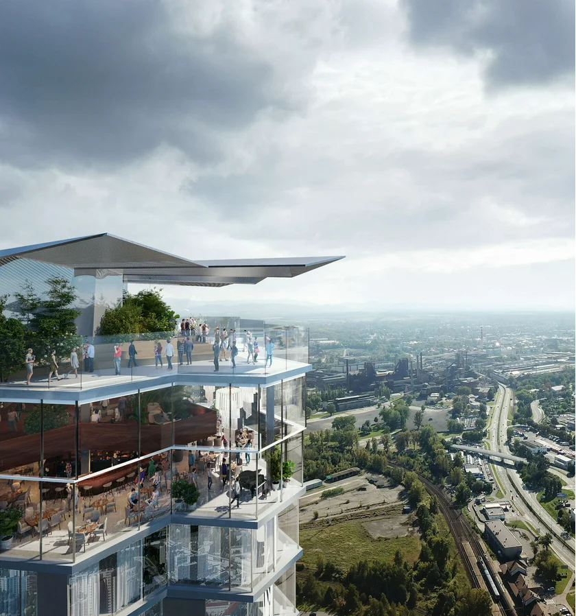 New designs for the soon-to-be-constructed Ostrava Tower, slated to be the tallest building in the Czech Republic at a height of 235 meters, have been released by architects. At the top of the Tower there will be a public viewpoint and restaurant, while the building will contain a range of commercial and entertainment facilities, offices, a hotel, meeting halls, apartments and a wellness center.