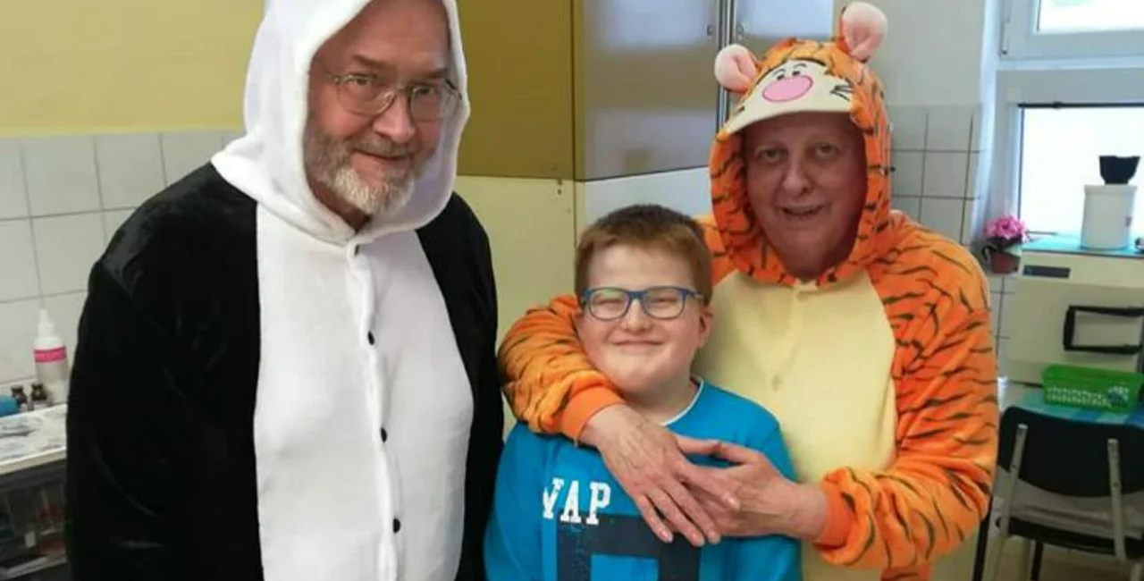 But Nova Bystřice dentist Dr. Ryšánek came up with a unique solution to be able to treat him: he donned a full-length panda suit to entertain Adam while performing the dental procedures, accompanied by his wife in a tiger costume.