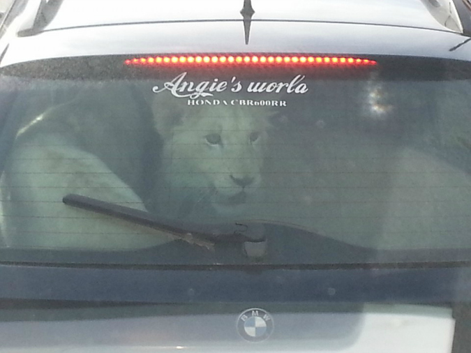 But how would you react to spotting a pair of white lions in the trunk of the car ahead of you?