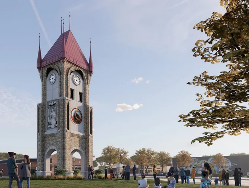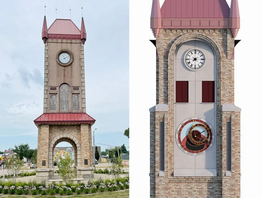 The clock, located in Cedar Rapids, is a replica of the 614-year-old Prague Astronomical Clock with a unique twist. Instead of apostles, 12 wooden sculptures of Czechoslovak immigrants will rotate through the windows, accompanied by the music of composers Antonín Dvořák and Bedřich Smetana. A Czechoslovak wolfdog will bark every quarter of an hour instead of the traditional rooster crowing.