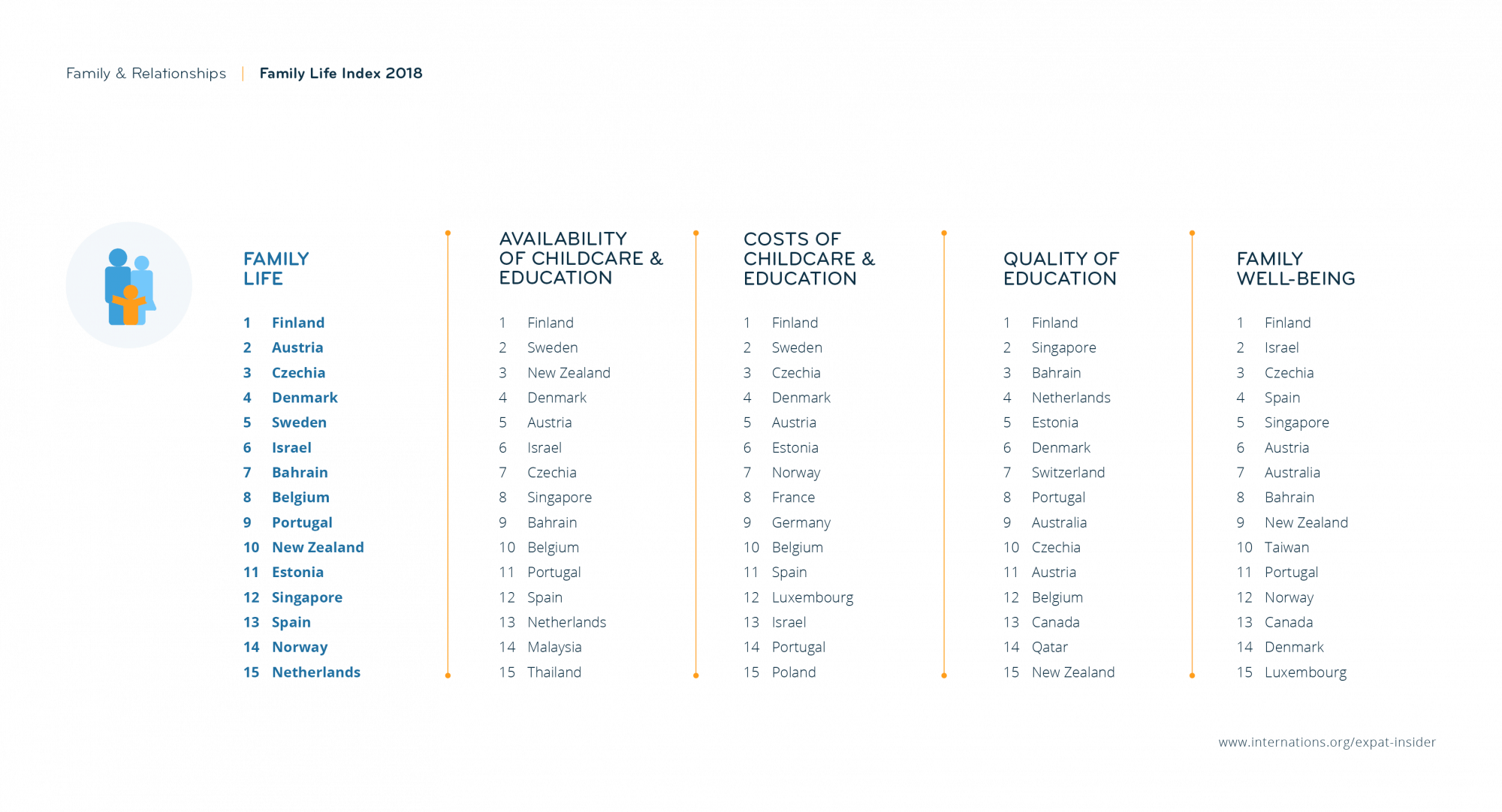 The Czech Republic has once again come in third (following Austria at no. 2 and Finland at no. 1) in the Family Life Index in 2018, placing in the top 3 for the third year in a row.