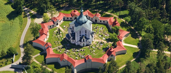 The abbot of the Žďár monastery had this pilgrimage church built to celebrate the memory of the Czech martyr and saint, John of Nepomuk. It is a unique testament to the genius of the Prague architect Giovanni Blasius Santini, who decided to use the five-pointed star as the principal symbol in his remarkable structure.