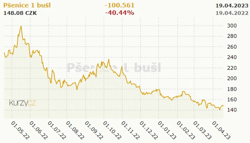 Since mid-May 2022, the price of one bushel (about 35 liters) of wheat has fallen from CZK 300 to CZK 148 now.
