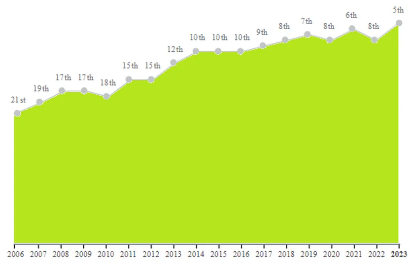 Czechia has seen an improvement in its ranking; in 2022 it was in eighth position. In 2013, it was ranked 12th, and in 2006 – the first year of the Henley Passport Index – it was ranked the 21st.