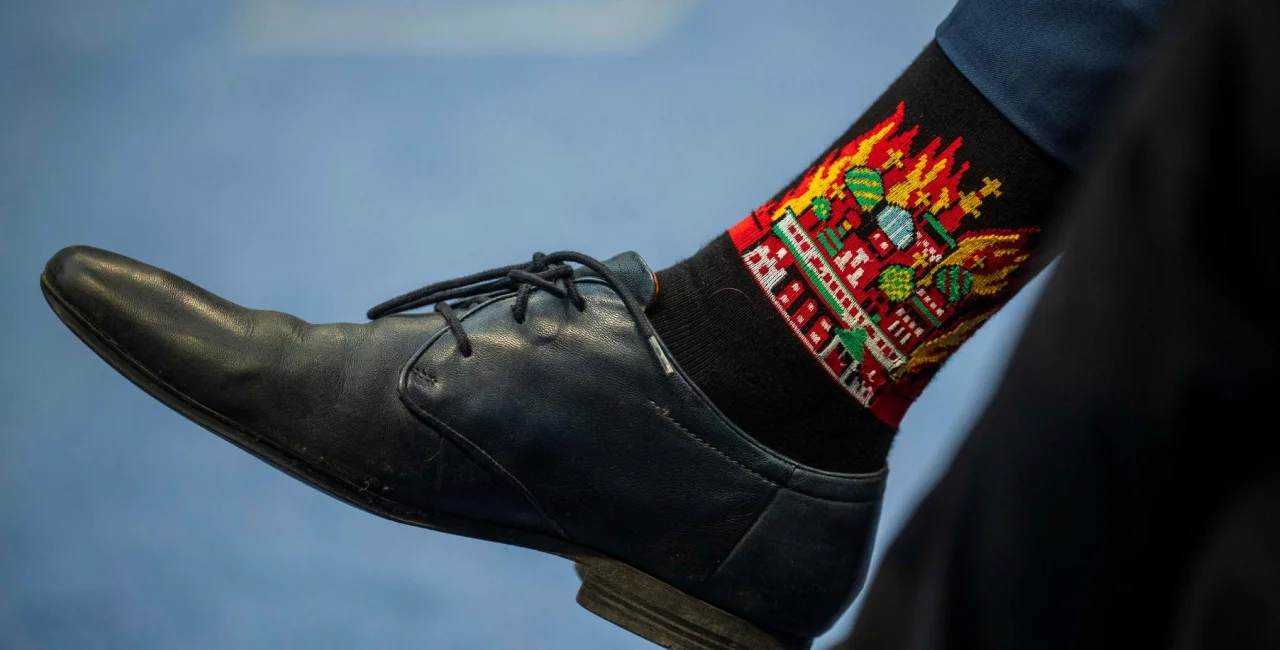 Kopečný fired back, saying, “For four years, the Russians have been bombarding Ukrainian cities with missiles and killing innocent people... But a pair of symbolic Ukrainian socks showing what it might look like if the same happened to their cities made them furious.”