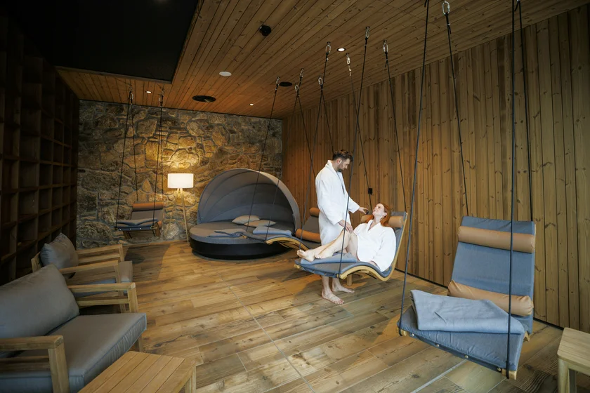 One steam room, built around a stone totem from the local valley, recreates constellations above Dolní Morava, adding a more immersive, design-led layer to the experience. Kneipp baths and heated relaxation rooms break up the circuit, while a health bar with refreshments keeps things grounded between sessions.