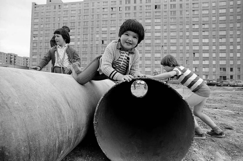 By the time I arrived, the area captured Čejka's nostalgic photos had changed. Back then, my husband was growing up among the concrete blocks, roaming freely over building sites. During the years we spent there with our own toddlers, there was a playground just outside, with a doctor’s office, metro station, and school all within a stone’s throw.