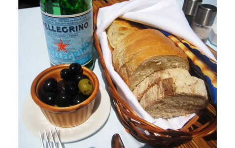 The waiter brought a bread basket with a variety of nice slices, including good focaccia. There were tasty green and black olives.