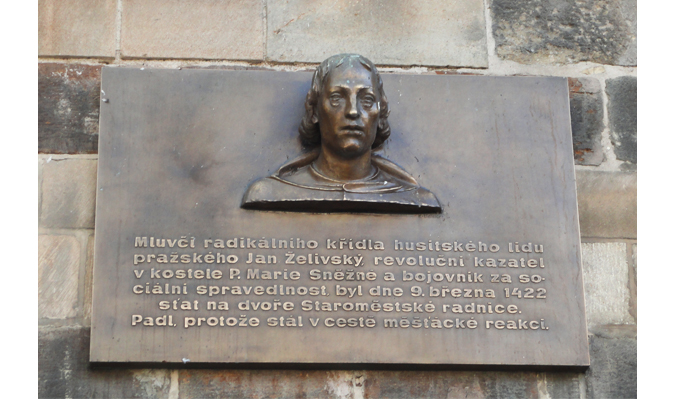 Almost in the same place, but two centuries earlier than the events described above, was another violent execution. Jan Želivský, a popular Hussite priest, was invited to the Old Town Hall to advise the alderman on the course of the Hussite War. In fact, the alderman had the door bolted and summoned the executioner, who then decapitated Želivský and 9 or 12 of his followers (numbers vary). Želivský’s followers were alerted to the treachery when blood began to trickle outside. They forced their way in to get their leader’s head, which they then carried through Prague on a platter. Afterwards, they retaliated with equal violence.