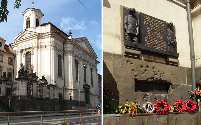 When assassins Jozef Gabčik and Jan Kubiš sprung on their target at the intersection of Zenklova and V Holešovičkách (The intersection looks a lot different today.) in Libeň on May 27th, 1942, they almost didn’t complete their mission. Gabčik’s gun failed to fire, and instead of driving away, Heydrich ordered the driver to stop and Heydrich returned fire, giving Kubiš the opportunity to hurl a bomb into the car. The bomb injured the target as well as Kubiš. Heydrich climbed from the wreckage and still tried to give chase, only stopping when the pain from his injuries got too much. He died a week later from septicemia.