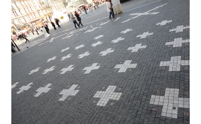 Beside the Old Town Square’s most famous draw card – the astrological clock – is the site of one the most infamous scenes in Czech history. On June 21st, 1621, 27 noblemen were executed for their role in dethroning the Habsburg Ferdinand and naming Friedrich as King of Bohemia. This break from the Habsburgs ended with the defeat of Bohemian forces at the battle of White Mountain. To punish the “insurrectionists”, a large scaffold was erected and the men were executed in order or rank, the most senior getting the chop first. Twelve of the heads were displayed for ten years on the Charles Bridge tower. Today, 27 crosses mark were this bloody event occurred. Earlier this year, the guerilla art group Ztohoven erected a 28th cross in honor of Martin Fruvejn, who was tortured to death before the formal execution.