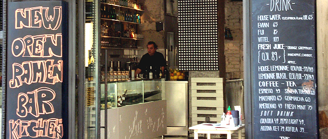 Truth be told, Kitchen is easy to miss. It shares the space with an upmarket accessories boutique, which has a more prominently displayed storefront. Two large chalkboards by the door claim there’s a ramen bar inside, but a glance down the dimly lit corridor at the empty dining tables lining the wall seems to contradict that statement.