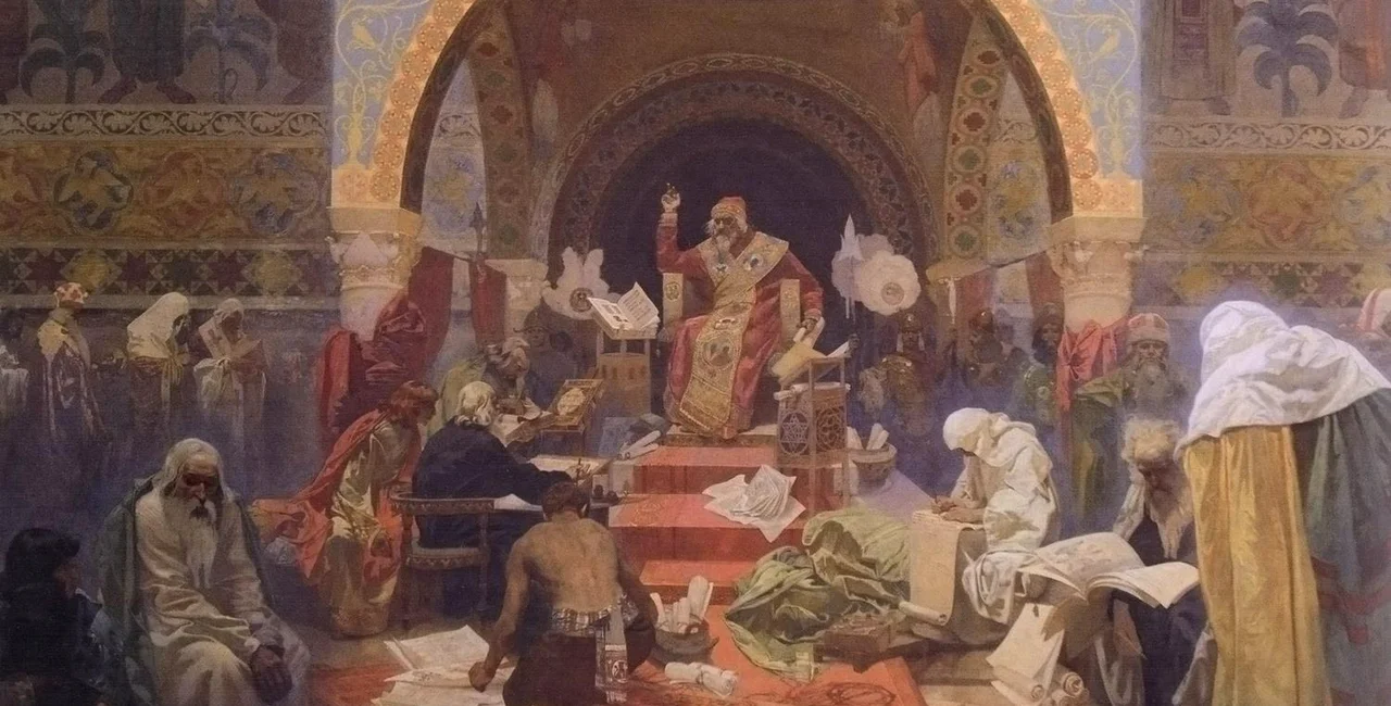The Slav Epic was painted over 18 years starting in 1910. Alfons Mucha first conceived of the cycle in 1899, while he was working on the interior of the Pavilion of Bosnia-Herzegovina, which had been commissioned by the Austro-Hungarian government for the Paris Exhibition of 1900. He traveled widely through the Balkans, researching the history and customs of the Slavs.