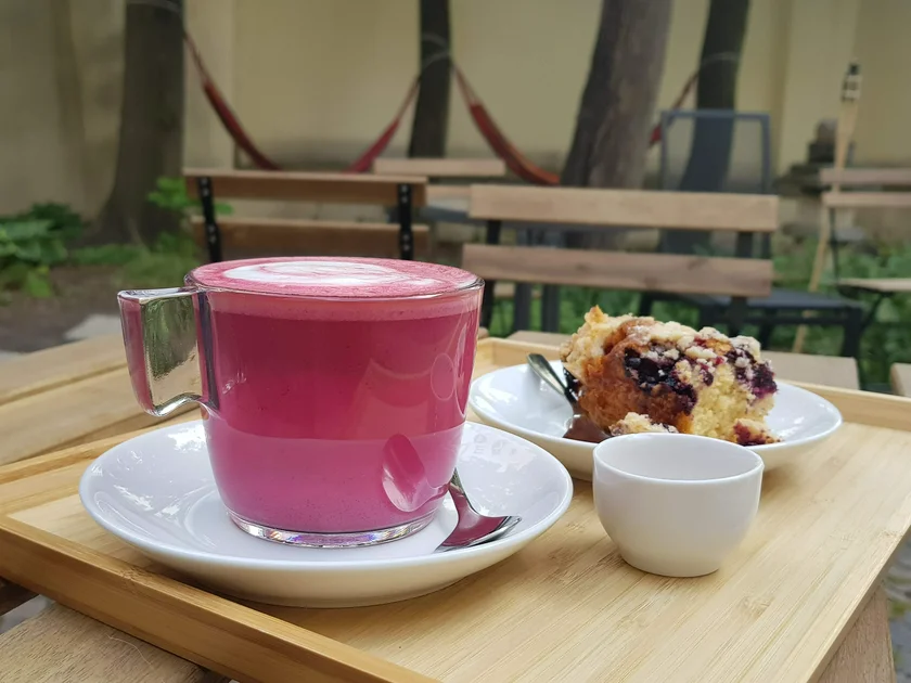 The café is part of the Náprstek Museum of Asian, African, and American Cultures, which makes it even more connected to the world’s art scene. To enter the café you have to walk through the surprisingly hidden and lovely courtyard of the museum which is located on Betlémské náměstí in Prague 1.