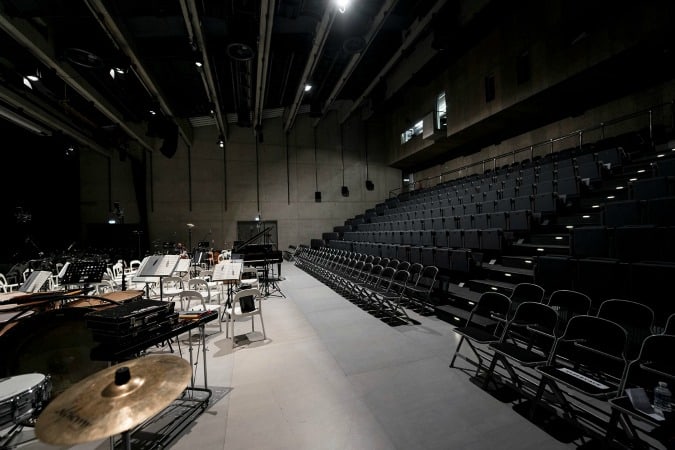 Equipped with leading-edge technology, this multifunctional space, called DOX+, has a capacity of 450-700 and is simultaneously a full-scale theatre and dance space, a movie theatre, and a conference hall, and concert venue.