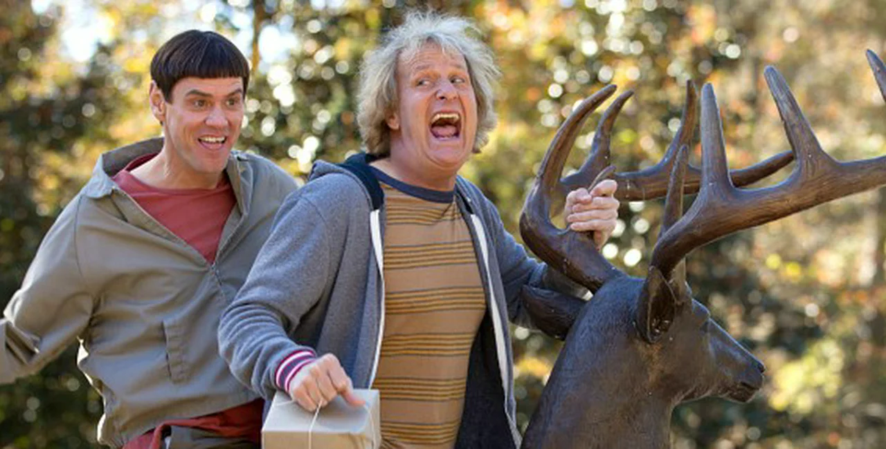 This film is basically a remake of the road movie original, with Lloyd Christmas (Carrey) and Harry Dunne travelling across the country unwittingly carrying a valuable package, trailed by criminals out to nab said package, so Lloyd can catch up with a hot girl. This time around, the hot girl is the daughter that Harry never knew he had. He’s trying to get to her because he needs a kidney transplant.