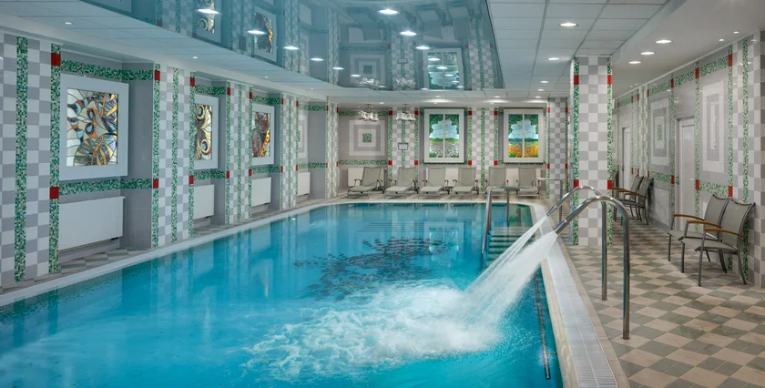 The stately landmark building dates from 1905 and is known for its distinctive and beautiful Art Nouveau facade. The four-star hotel’s in-house spa department specializes in applying the town’s powerful natural healing resources to a wide range of modern therapies and health programmes – from mineral baths to complete spa cures to post-operative rehabilitation.