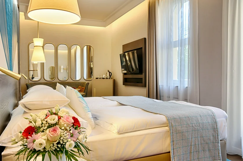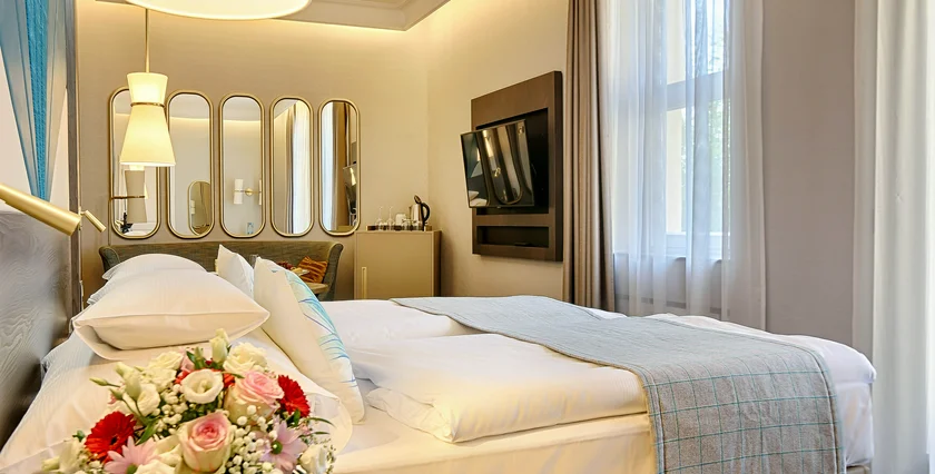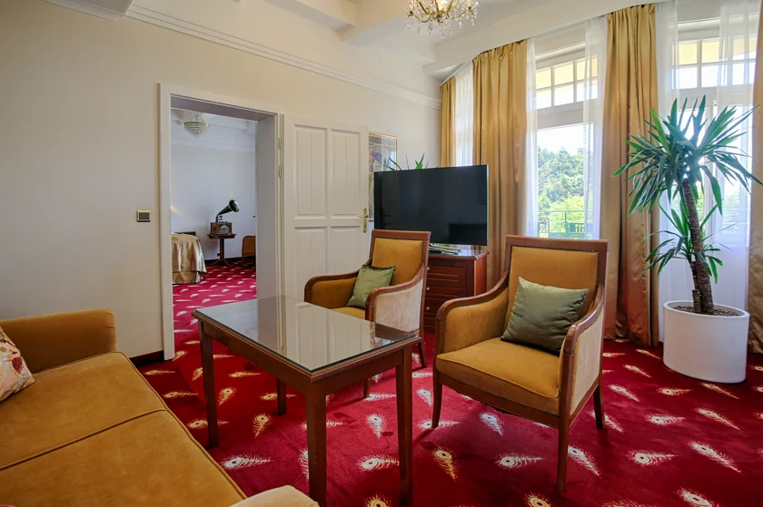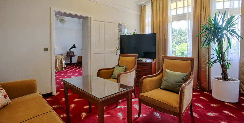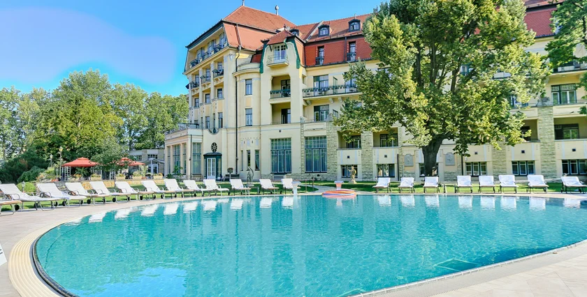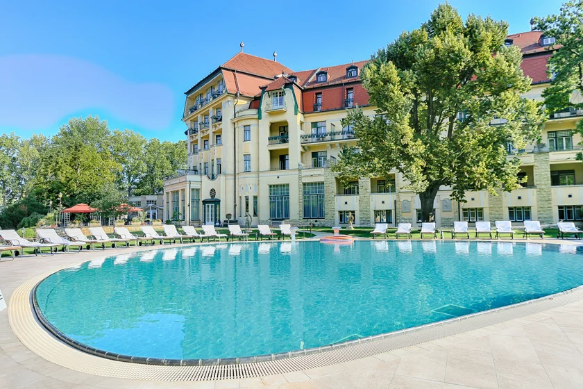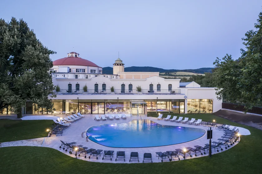 The art nouveau hotel is connected to the Irma Spa House, which is built directly above the Piešťany hot springs, whose thermal waters bubble up from 2,000 meters below ground.