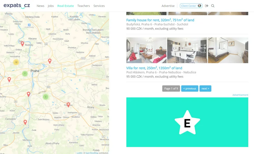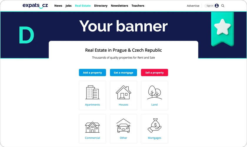 Show your advertising on the listing results (after search filter) and on individual property listings shown across the expats.cz real estate system.