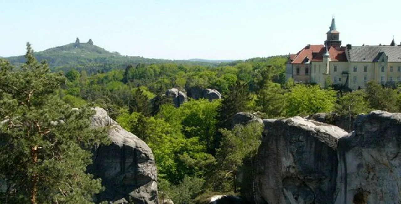 The very name of this stone city describes it: prach is the Czech word for dust, after the gently eroding rock, carpeting the ground and paths that twist tortuously around the giant pillars of sandstone. As in the other stone cities, there are numerous trails to follow. The rocks are northwest of Jičín and within easy reach of the town, and Trosky and Hrubá skála lie to the northwest.