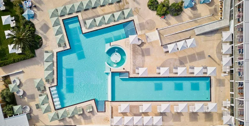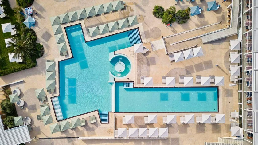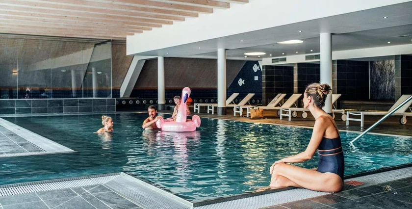 The Acquapura Organic SPA, a wellness and water world covering 1,400 sqm with a separate family and adults-only spa, is equipped with indoor and outdoor pools, a wave and speed slide and a water spray installation.