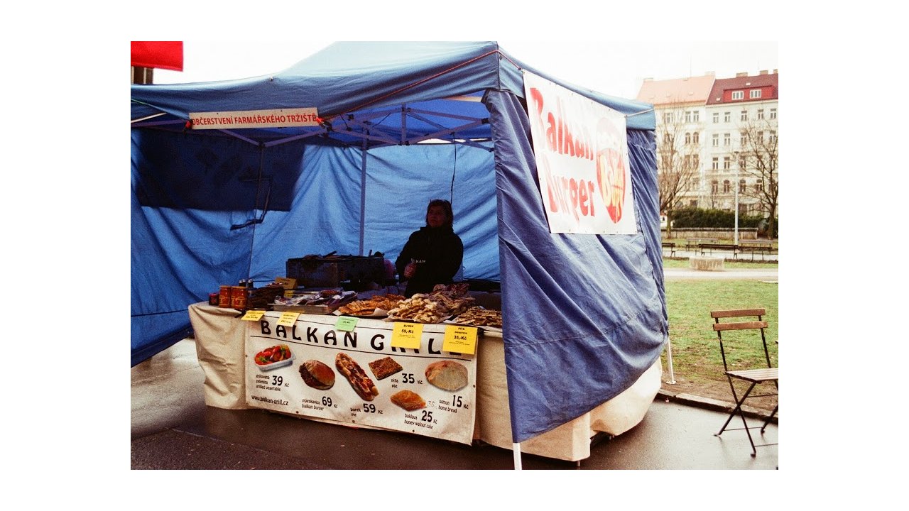 On one of my laps the sound of sizzling meat on a grill drew me closer to the Balkan Burger stand. The Bosnian vendor was flipping some pljeskavica—a typical meat patty from the Balkans. He also sells jars of ajvar (a kind of red bell pepper relish) and homemade burek (a savory cheese-filled pastry), among other things. The burger tasted pretty darn authentic and went down well with a .5L of Bakalář beer (brewed in Rakovník) that I bought near the top of the market.