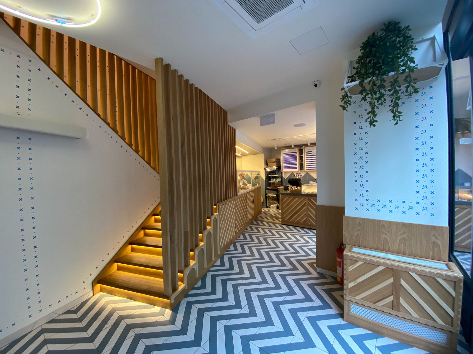 The interior of Knedlín, which offers plenty of seating across two floors, is attractively designed in the style of the iconic Czech folk printing that was recently added to the UNESCO Intangible Cultural Heritage list.