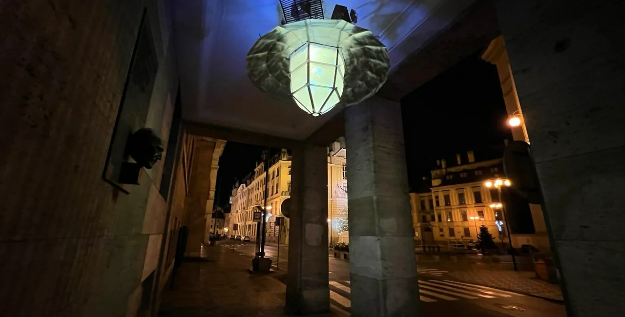 The installation, in the shape of a lamp, represents the swarm of information and misinformation swirling around in the modern world. The lamp detects when fake news is being shared through known Czech disinformation websites, and represents this by limiting its light output. Passers-by will experience a real-world darkness brought about by the spread of fake news online.