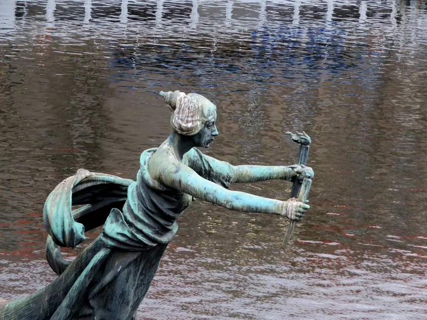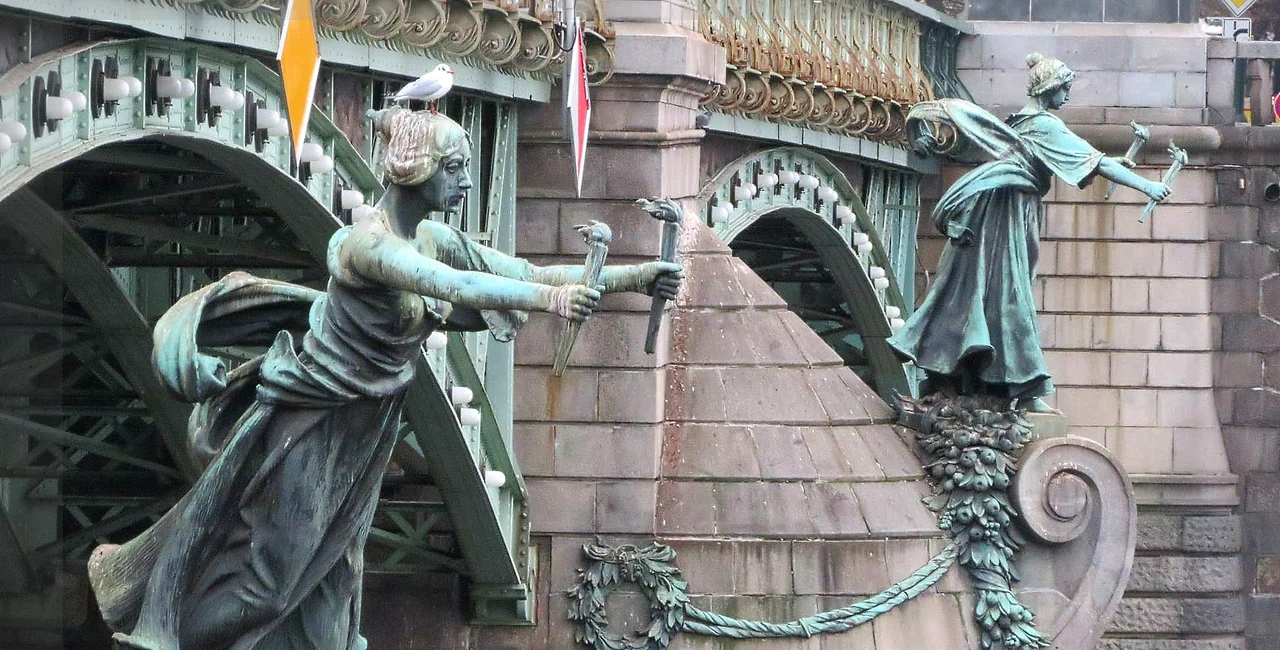 The original designs for Čechův most called for real flames to rise from torches held by two allegorical bronze statues on the pillars on the western side, and spouts of water to spew from the mouths of the three-headed hydra on the eastern side. These effects will finally be seen for the first time over a century after the bridge opened.
