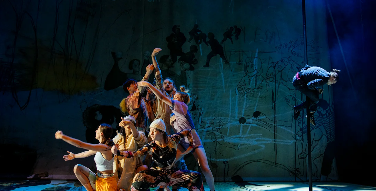 The means are a variety of circus disciplines, such as the cyr wheel, aerial silks, hoops, the Chinese pole, juggling, and pair acrobatics. The cast features a quirky clown, and moves from mesmerizing aerial skills to break dance, street dance and contemporary dance, all to the beat of live music.
