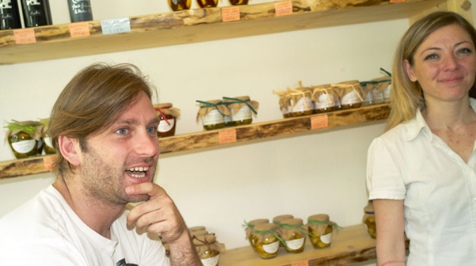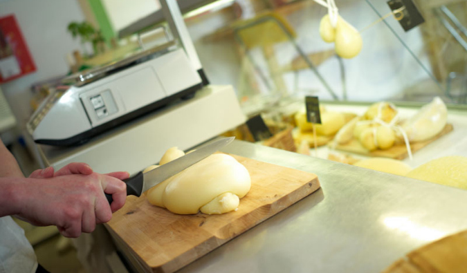 With that in mind, Mozzarellart also offers a sprinkling of other products from small family-run companies in the Puglia region, including pasta, wines, and different kinds of spreads. Before anything goes on the shelf, customers are asked to taste and give the potential new product a thumbs up or down. A brownish-looking paste with a curious chocolate and chili flavor is currently being floated. “We spread it on the old cheese. Do you like?” D’Amelj asks, licking a smudge off his thumb. “I just don’t know yet.”