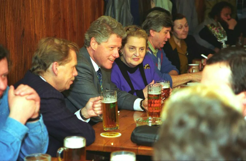 Clinton has made multiple visits to Prague, with his initial trip in 1970 as a 24-year-old student. In January 1994, during a meeting with then Czech President Václav Havel, Clinton, the 42nd U.S. president, declared that NATO expansion was not a matter of “if” but “when.” During the 1994 visit, Clinton famously played his saxophone at the Reduta Jazz Club and had a beer with Havel and Madeleine Albright at U Zlatého Tygra pub.