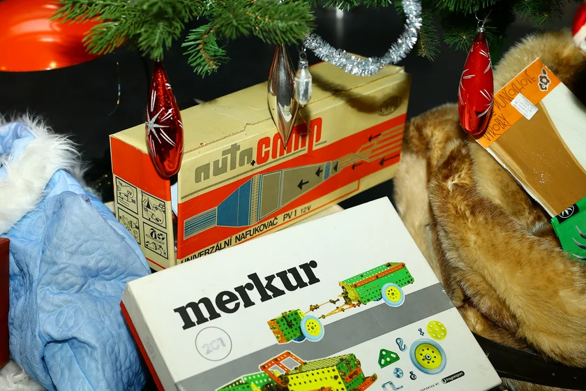 Seasonal decorations, trees adorned with traditional glass ornaments, and other treasures from Tuzex hard currency stores, capture the festivities of a different era. Skis and bicycles were among the most requested gifts under the tree (the exhibit features winter sports gear and the iconic Skivo ski waxes) as well as Merkur kits and dolls.