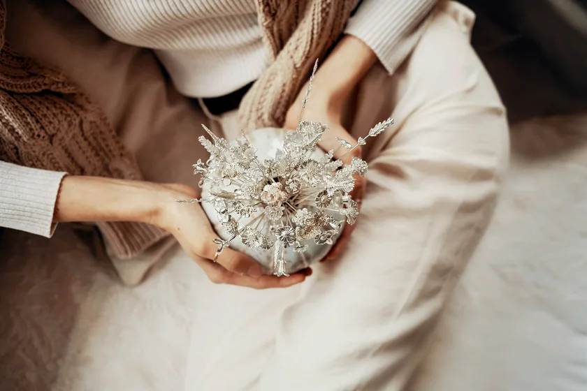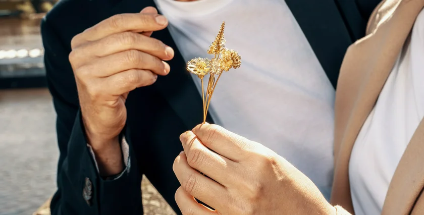 Silver snowdrops, golden daisies, and lavender in metallic form – these are just a few examples of GIYOU’s offerings. While smaller blooms are popular gifts for women, Bláha reveals that larger, gilded bouquets often find their way into men's offices and studies.