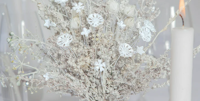 "Silver and golden flowers are perfect for Christmas," Bláha says. "They capture the holiday spirit with elegance and craftsmanship, enhancing the festive atmosphere."